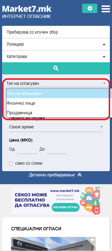 Пребарувајте огласи на Market7.mk според типот на огласувач